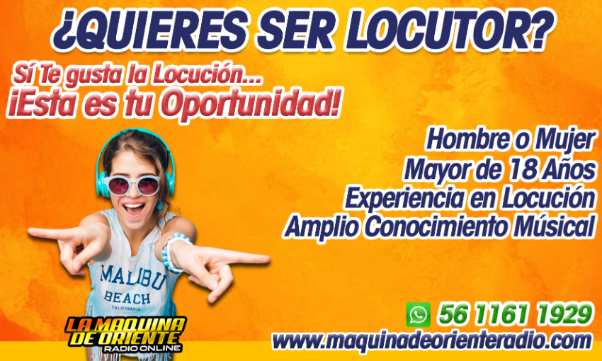 Si te gusta la comunicación, tienes facilidad de palabra, experiencia en locución y gran conocimiento musical, puedes formar parte de La Máquina de Oriente Radio y conducir tu propio programa vía internet, te estamos esperando...